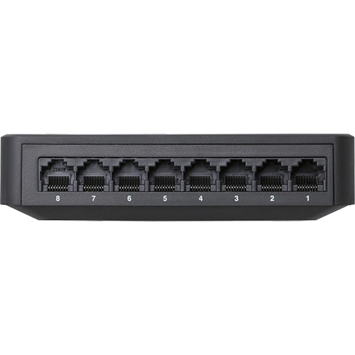 ●音が静かなファンレス設計で、ループ検知機能も搭載した1000BASE-T対応の電源外付けプラスチック筐体8ポートハブ、本体色はブラックです。