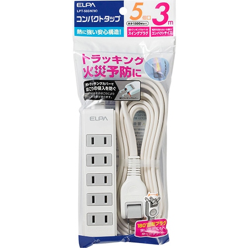 ELPA コンパクトタップ 5個口 3m ホワイト LPT-503N(W) 1個
