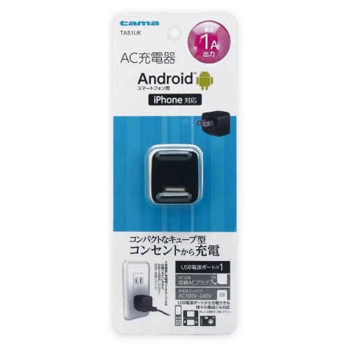 多摩電子工業 コンセントチャージャー 1A 1ポート ブラック TA51UK 1個