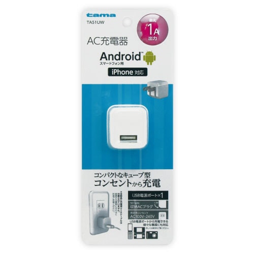 | 商品仕様 | ●コネクタ形状(本体)/USB-A×1ポート ●電源/家庭用コンセント ●寸法/W約28×D28×H31mm ●重量/約23g ●色/ホワイト ●入力電圧/電流/AC100~240V(50/60Hz)/0.2A ●出力電圧/電流/DC5V/1A ●備考/※寸法はACプラグ含まず。 ※充電用USBケーブルは別売です。 |