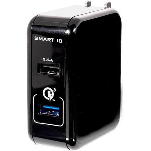 ●超速充電できるQuick Charge 3.0(QC3.0)対応のType-Aポートと、2.4A出力対応のType-Aポートを搭載したブラックのAC充電器です。