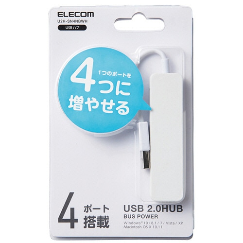 エレコム USB2.0ハブ(コンパクトタイプ) ホワイト U2H-SN4NBWH 1個