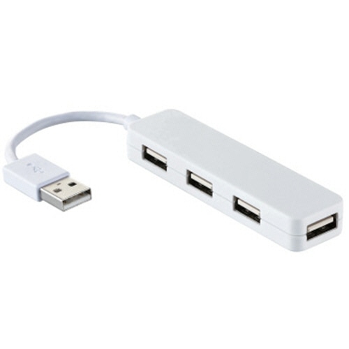 ●パソコンのUSBポートに接続してポートを増やせる4ポートUSB2.0ハブ。本体色はホワイトです。