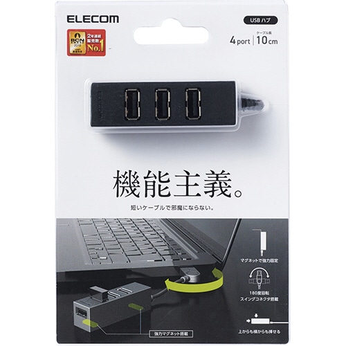 エレコム 機能主義USBハブ 4ポート ケーブル長10cm ブラック U2H-TZ426BBK 1個