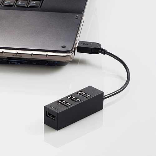 ●ケーブル長が10cmと短く、ノートパソコンで使用してもケーブルが邪魔にならず、快適に使用できる4ポートUSBハブ。カラーはブラックです。