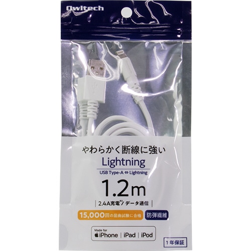 オウルテック やわらかく断線に強い 高い耐久性と柔軟性を併せ持つLightningケーブル ホワイト 1.2m OWL-CBKLTSR12-WH 1本