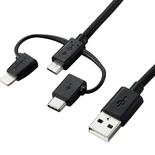 | 商品仕様 | ●コネクタ形状/USB Aコネクタオス-microUSB Bオス、USB Type-Cコネクタ(オス)、Lightningコネクタ(オス) ●ケーブル長さ/0.3m ●その他仕様/●充電・データ転送対応 |