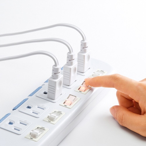 ●一括集中スイッチ付きです。6個口すべて一括でON/OFFできます。
