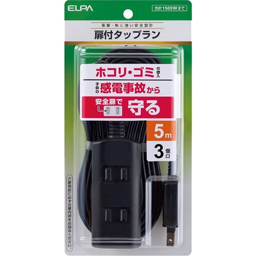 ELPA ほこりシャッター付タップ 3個口 5m ブラック WBT-N3050B(BK) 1個