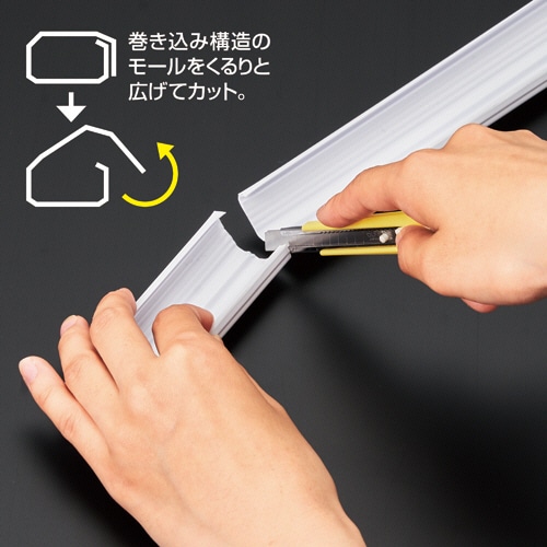 必要な長さにハサミやカッターで簡単にカットできるカバー一体型配線モール