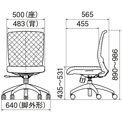 | 商品仕様 | ●背張地タイプ/メッシュ ●寸法/W640×D565×H890~986mm ●重量/13.8kg ●色/グリーン ●座面高さ/435~531mm ●座幅/500mm ●脚幅/640mm ●材質/背座張地:ポリエステル100%、クッション:モールドウレタン、背シェル:ポリアミド、座シェル:ポリプロピレン、脚:アルミダイキャスト、キャスター:ナイロン ●クッション材質/モールドウレタン ●機能/ロッキング、座ガス上下調節可能 ●肘掛け/なし ●脚部仕様(キャスター/アジャスター)/キャスター ●製造国/中国 ●付属品/六角レンチ ●保証期間/外装・表面仕上げ:1年、機構部・可動部:2年、構造体:3年 ●その他仕様/●クッション厚:65mm |
