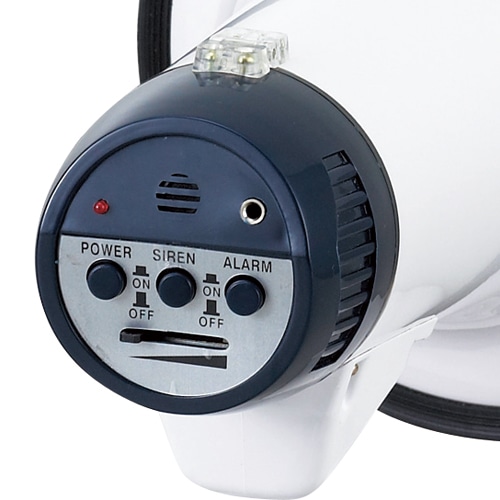 | 商品仕様 | ●寸法/W205×D340×H260mm ●重量/1100g ●その他仕様/●出力:最大25W ●電源:単1形乾電池×6本(別売) ●マイクロホン:コンデンサーマイクロホン ●有効距離:約200m(周囲の状況により異なります) ●電池寿命:アルカリ乾電池使用時、約12時間(使用状況により異なります) ●機能:ハンドマイク、警報サイレン/アラーム付き ●備考/※重量は乾電池除く、マイク含む |