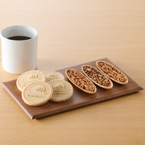チョコをサンドした「クッキア」と、ナッツを香ばしく焼き上げた「ナッティア」の詰合せ。