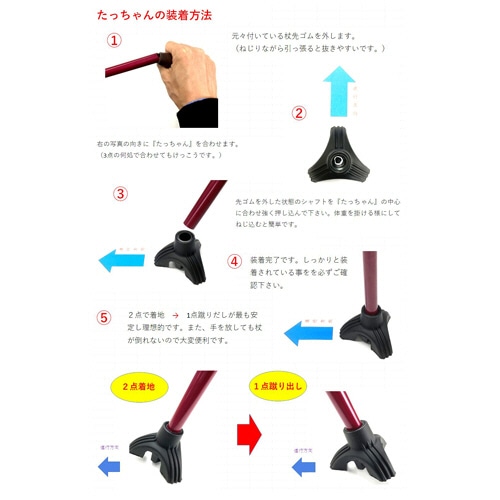 自立する三点式つえ先ゴム。