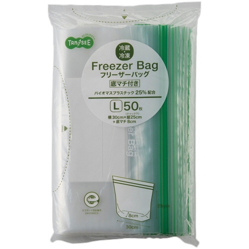 TANOSEE マチ付フリーザーバッグ バイオマスポリエチレン配合 L 1パック(50枚)
