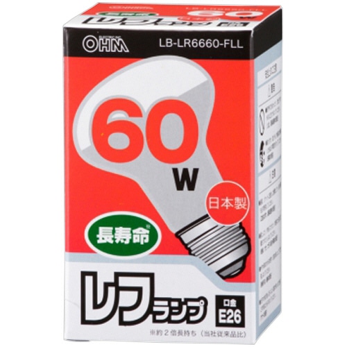 オーム電機 屋内用 長寿命レフランプ E26口金 60W LB-LR6660-FLL 1個