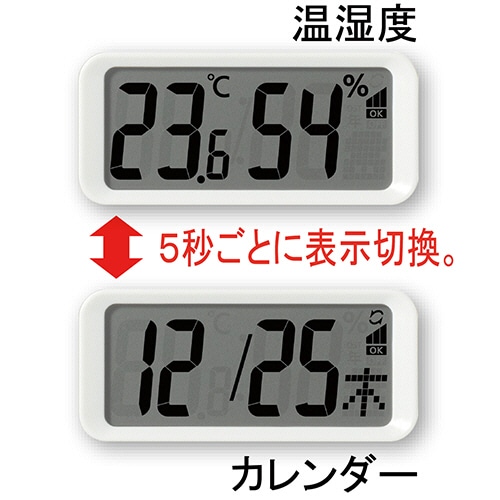 【電波式】5秒ごとに日付と温湿度を切替表示。
