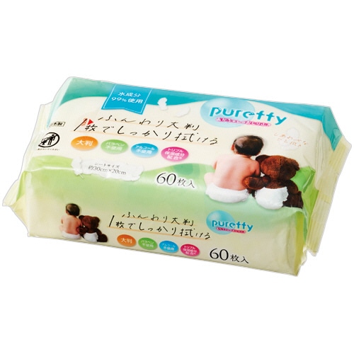 昭和紙工 pureffy ふんわり大判1枚でしっかりふけるおしりふき 1パック(120枚:60枚×2個)