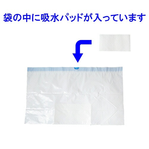 | 商品仕様 | ●寸法/W380×D×H650mm ●材質/袋・ヒモ:ポリエチレン、吸収パッド:吸収ポリマー・セルローズ ●その他仕様/●吸収パッド寸法:W130×H240mm ●吸収量:約450mL(1回約150mLとして、排尿約3回分を吸収) ●備考/※寸法は袋のサイズです。 |