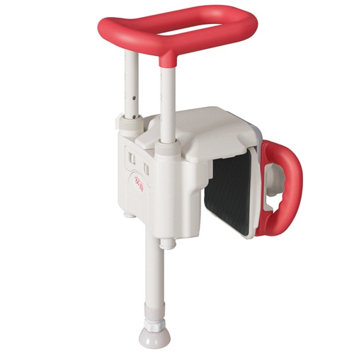 ●浴槽壁が低いユニットバスにも対応可能な浴槽手すり、色はレッドです。