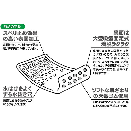 ●ソフトな肌ざわりの天然ゴム使用で、座った際も快適。