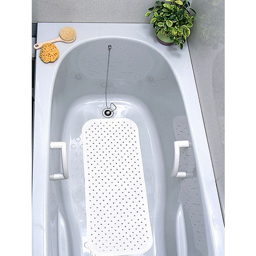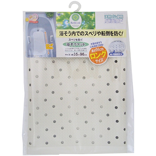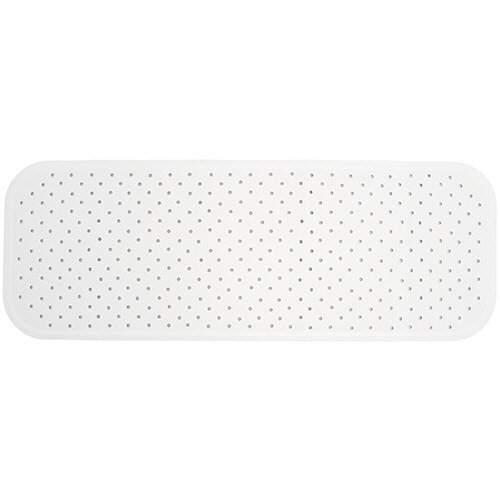 ●大型の浴そうにも対応できるロングサイズの浴そうマット、寸法約350×960mm、色はホワイトです。