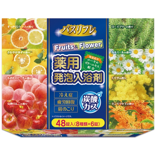 ライオンケミカル 薬用発泡入浴剤 バスリフレ フルーツフラワー 40g/錠 1箱(48錠:8種類×6錠)