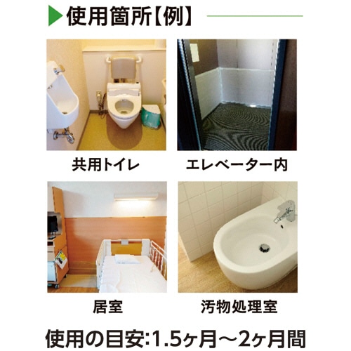 商品仕様 | ●香り/ハーバルグリーンの香り ●内容量/200mL ●使用推奨空間/共用トイレ、エレベーター内、居室、汚物処理室 ●持続時間/1.5~2ヵ月間 ●シリーズ名/パワフル消臭ストロング |