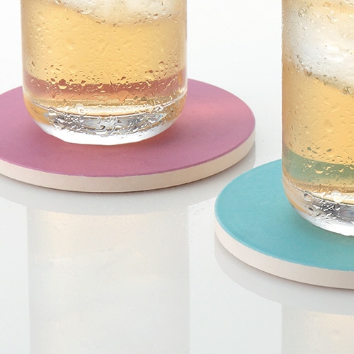 ●ピンクの吸水コースター。