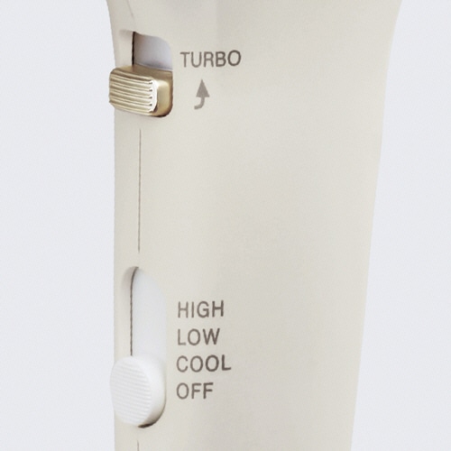 ●大風量2.3m3/分で高速乾燥、軽量460g。イオンバランスドライヤー、色はホワイトです。