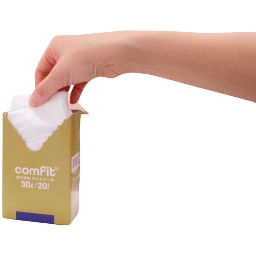 ●取り出し口が大きく、1枚ずつ取り出しやすい。手つきでしばりやすい。容量20L、20枚入です。