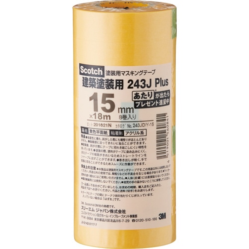 3M スコッチ マスキングテープ 243J 塗装用 15mm×18m 厚み0.8mm 243JDIY-15CS 1セット(80巻:8巻×10パック)
