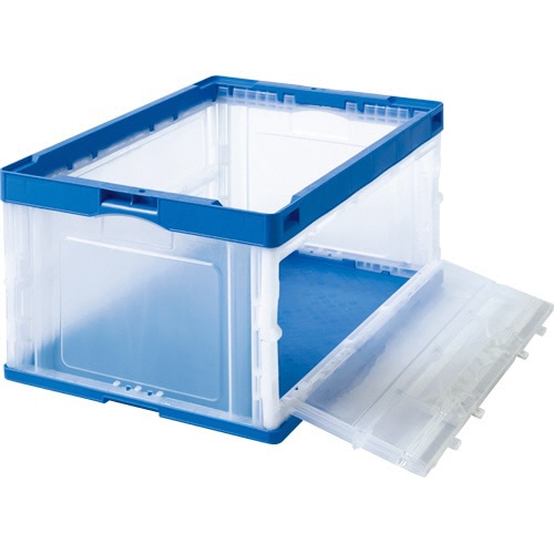 TANOSEE 折りたたみコンテナ フタなし 長辺扉付 75L ダークブルー/透明 1台