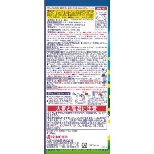 | 商品仕様 | ●対象害虫/ヤブ蚊 ●用途/屋外用 ●内容量/450ml ●香り/無香料 ●その他仕様/●防除用医薬部外品 ●シリーズ名/蚊がいなくなるシリーズ |