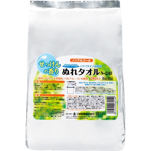 三昭紙業 おもいやり心 バケツタイプぬれタオル 詰替用 N-240 1パック(240枚)