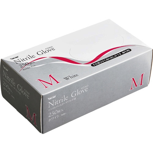 川西工業 ニトリル 使いきり手袋 粉なし M ホワイト #2060 1箱(250枚)
