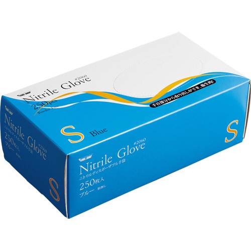 川西工業 ニトリル 使いきり手袋 粉なし S ブルー #2060 1箱(250枚)