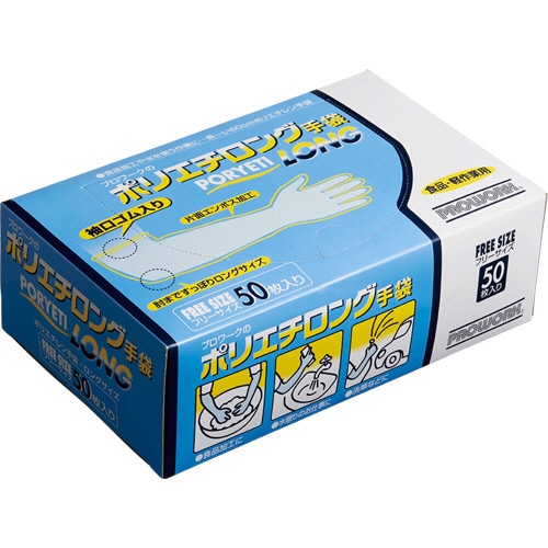 中部物産貿易 ポリエチロング手袋 半透明 フリーサイズ 1箱(50枚)