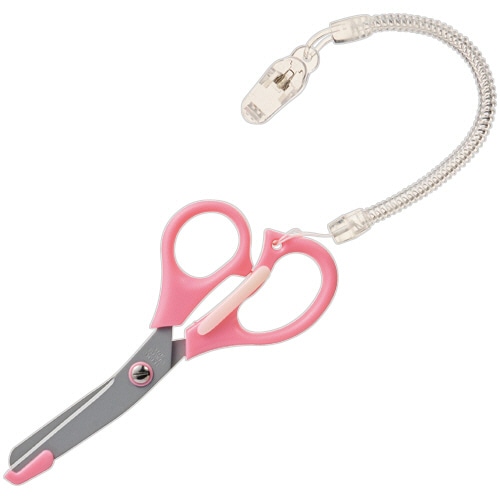 ●フッ素コーティングされた切れ味抜群。右利き用ハサミ、色はピンクです。