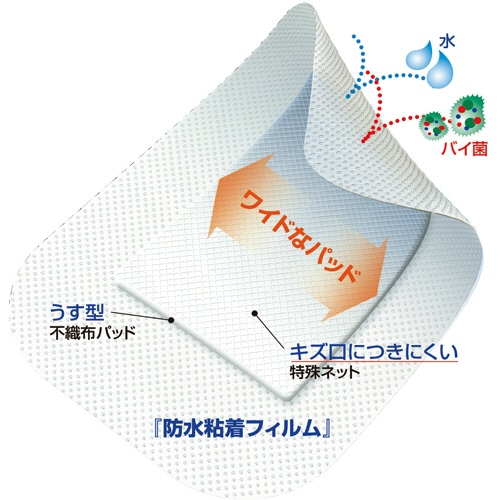 貼ったまま入浴もできる、防水タイプの大判ドレッシング材。