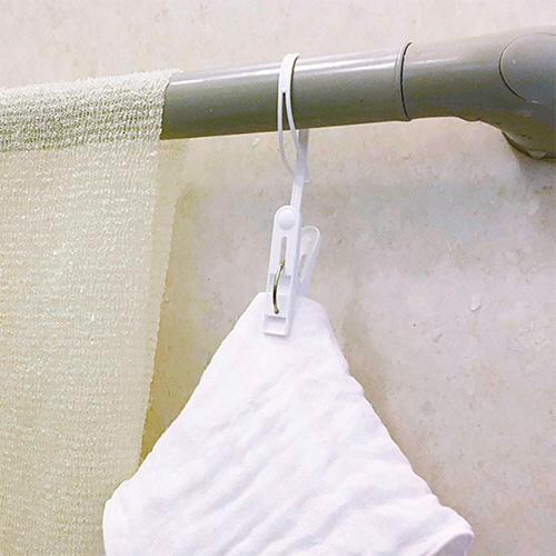 ●デスク周りのタオル掛けや、お風呂の小物の吊り下げ収納など、洗濯ピンチを吊り下げたいところでも活躍します。
