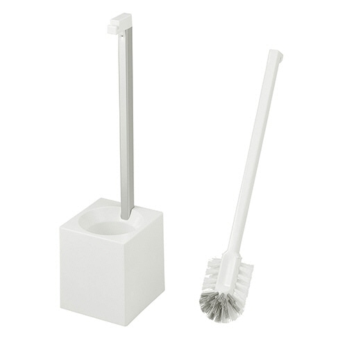 ●KAKU型のおしゃれなシンプルデザインのトイレブラシ&ケース。色はホワイトです。