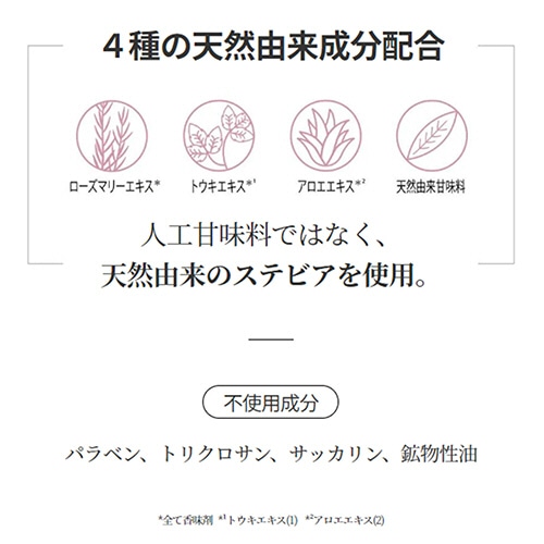 ●4種の天然由来成分配合。人工甘味料ではなく、天然由来のステビアを使用。