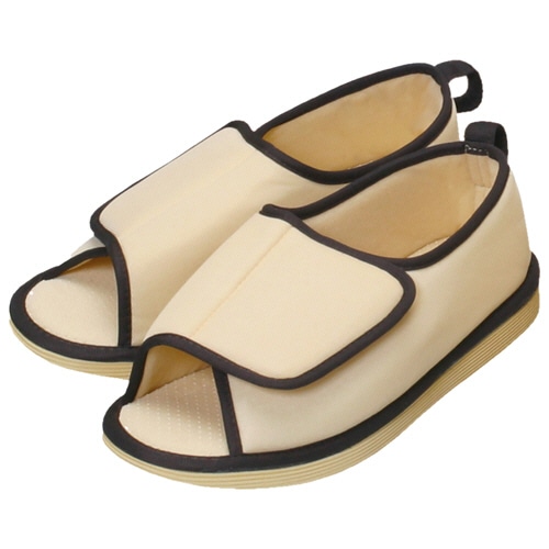 竹虎 転倒予防シューズ つま先なし LL ベージュ 1足