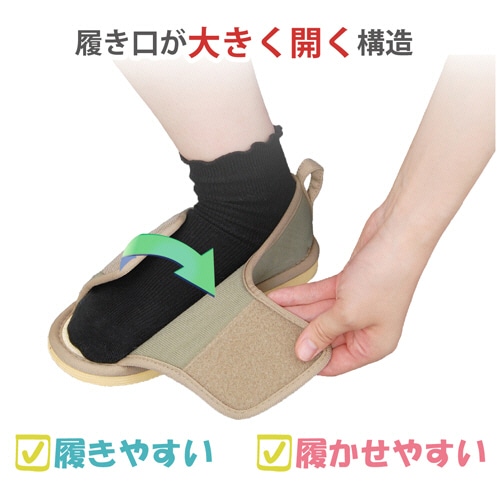 ●大きく開く履き口で、履きやすく履かせやすい面ファスナー(マジック式)。