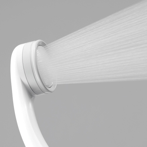 ●約0.3mmの細い水流と均等配列した高密度なやわらかい肌あたりで、頭全体をしっかりやさしく包みこむ水幅ワイドなシャワーです。