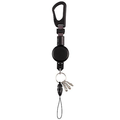 | 商品仕様 | ●色/ブラック ●リール伸縮/最伸70cm ●寸法/W32×D215×Hmm ●材質/本体:ポリカーボネイト、リール:ナイロン ●重量/19g ●その他仕様/●リング内径:11mm ●タイプ:ハード ●備考/※リールは好きな長さでロックできます。3連フック・ジョイントパーツ付 |
