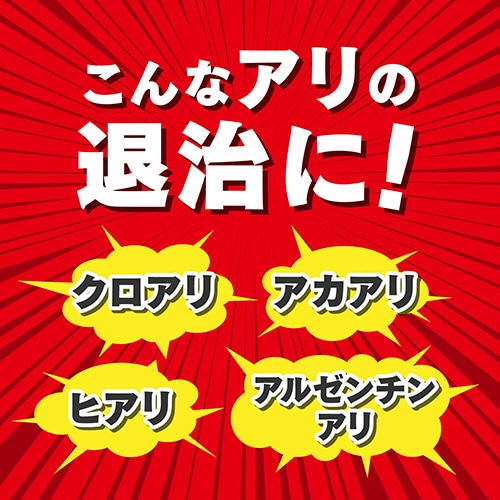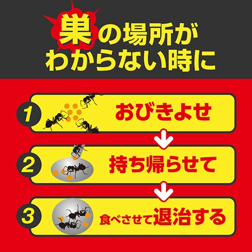 ●大きいアリも小さいアリも巣に持ち帰らせ、食べさせて、アリを巣ごと退治する殺虫剤。