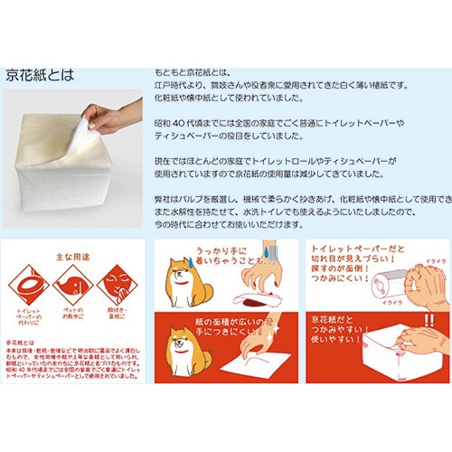 ●もともと京花紙とは、江戸時代より、舞妓さんや役者衆に愛用されてきた白く薄い楮紙です。化粧紙や懐中紙として使われていました。