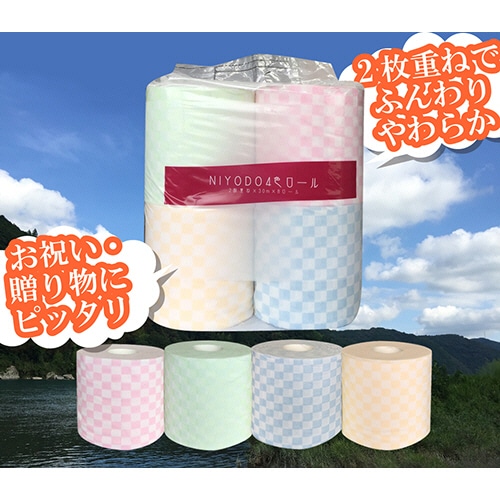 和光製紙 NIYODO4色ロール ダブル 30m 市松柄 1パック(8ロール)